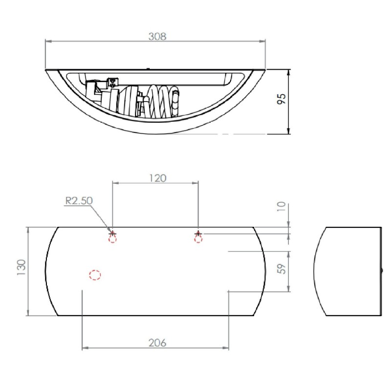 - Dimensions in mm: height 130, width 310, depth 95 mm
