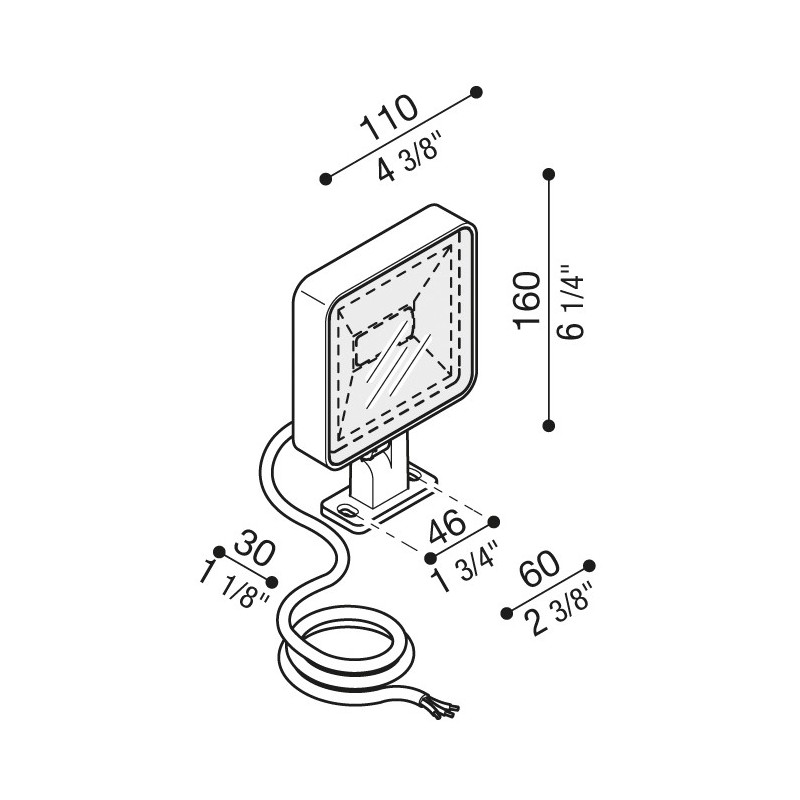 - Inaccessible luminaire, supplied with 1 m of pre-wired H05RN-F power cable