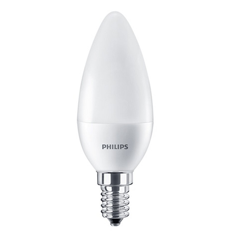 Philips LED olive bulb, power 5.5W (equivalent to a traditional bulb of 40W), E14 socket, warm light 2700K, voltage 220-240 V, energy class A+, non-dimmable.