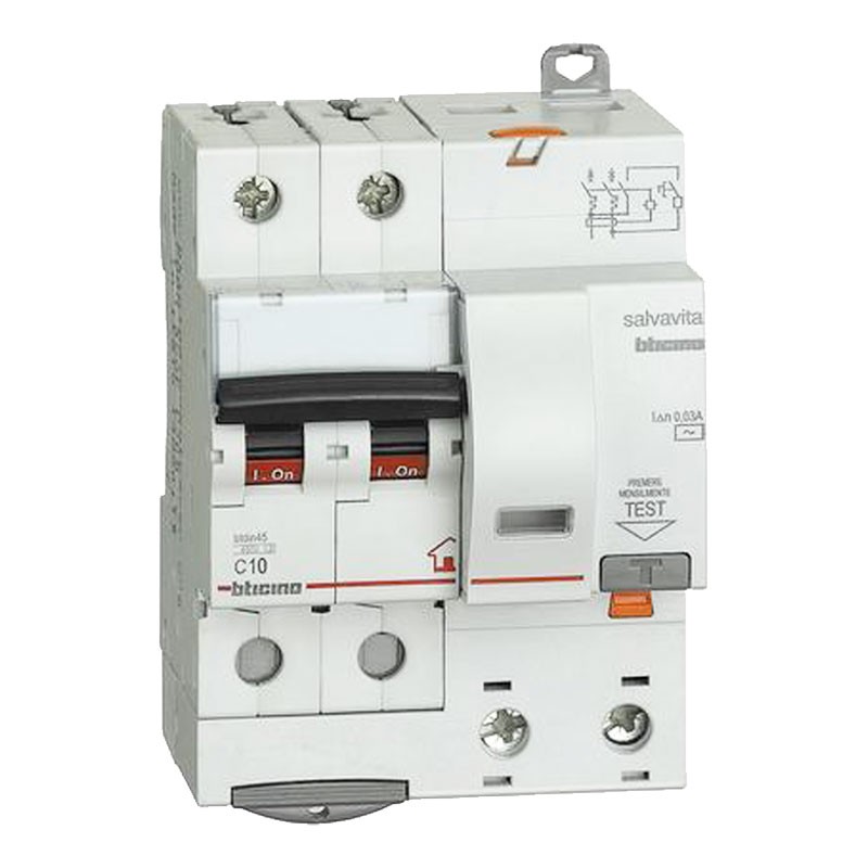 Bticino 10A 2 poles thermal-magnetic circuit breaker 30MA AC 4,5KA 4M GC8230AC10