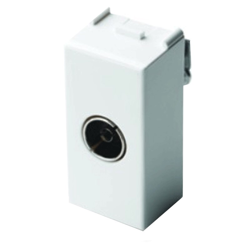 Master Mix coaxial TV socket with 9,5 mm female connector, 1 module, white color. It is called passing because it allows the passage of the signal to another TV socket.