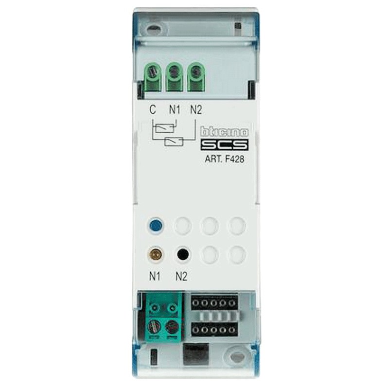 Pay in installments with KlarnaThis device makes it possible to integrate traditional control devices (switch, button, etc.) into advanced systems with BUS operating logic. It is therefore possible to extend the use of the Lighting Management system in environments where traditional systems are already present or in historical and valuable environments for which the complete or partial renovation of the electrical system involves costly masonry work. The old but valuable switch with its wiring no longer compliant with standards, can therefore continue to perform its service because the connection to the load to be controlled is made in complete safety by means of the connection to the respective interface with voltage-free contact. The N1 contact pilots the light point PL1, the N2 contact pilots the light point PL2.