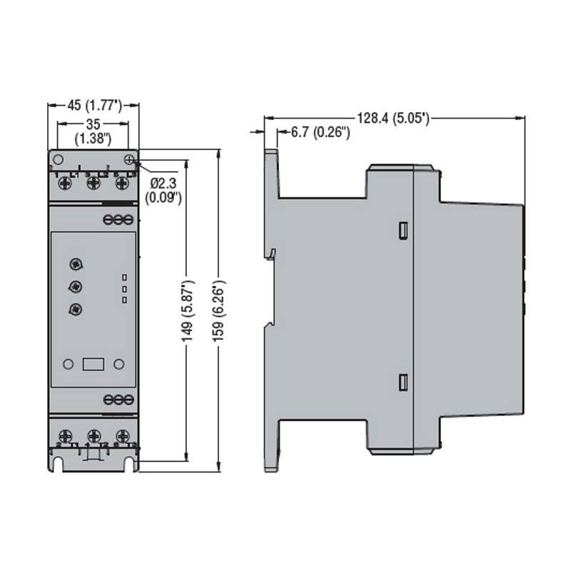 Compact size: ADXN soft starters feature 2-step control and are made in an extremely compact package, only 45mm wide for the entire range up to 45° (divided over 2 mechanical sizes that differ in height and depth).