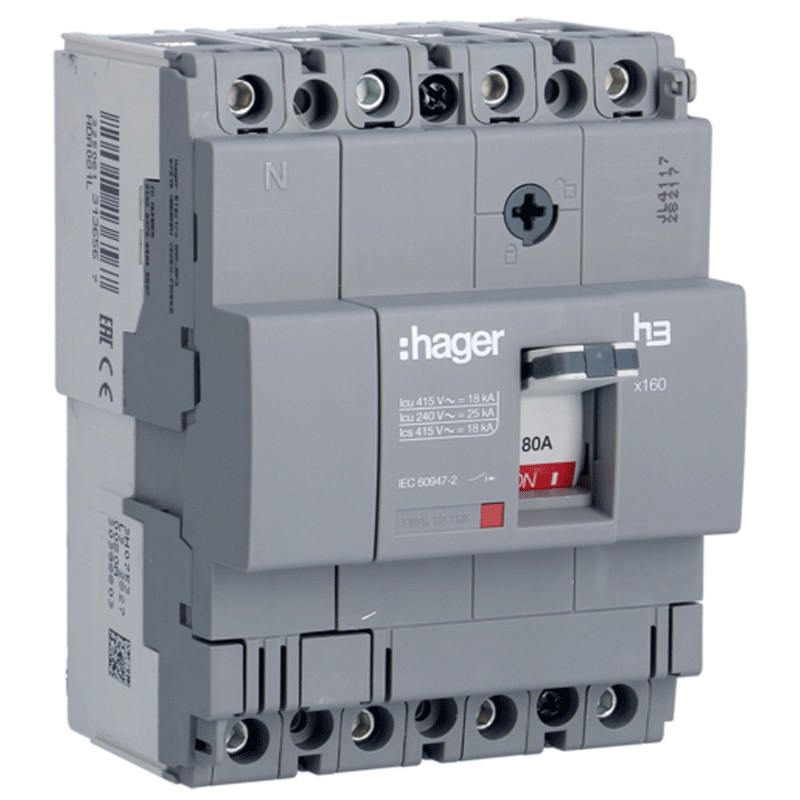 Hager X160 4P 18KA 80A HDA081L thermomagnetic circuit breaker