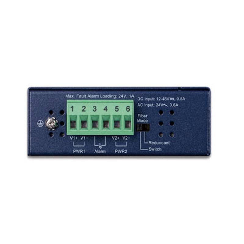 The two SFP ports allow mode switching with its built-in DIP switch. Through its built-in DIP switch, the IGS-620TF can be configured as a 6-port Ethernet switch or in 4+2 fiber redundant mode . With the 6-port switch mode, the IGS-620TF can operate in the Store-and-Forward mechanism with high performance; on the other hand, when in 4+2 fiber redundant mode, it provides fast fiber link redundancy for highly critical Ethernet applications. The redundant mode also supports the automatic recovery function. If the destination port of a packet is link-down, it will forward the packet to the other port of the backup pair.