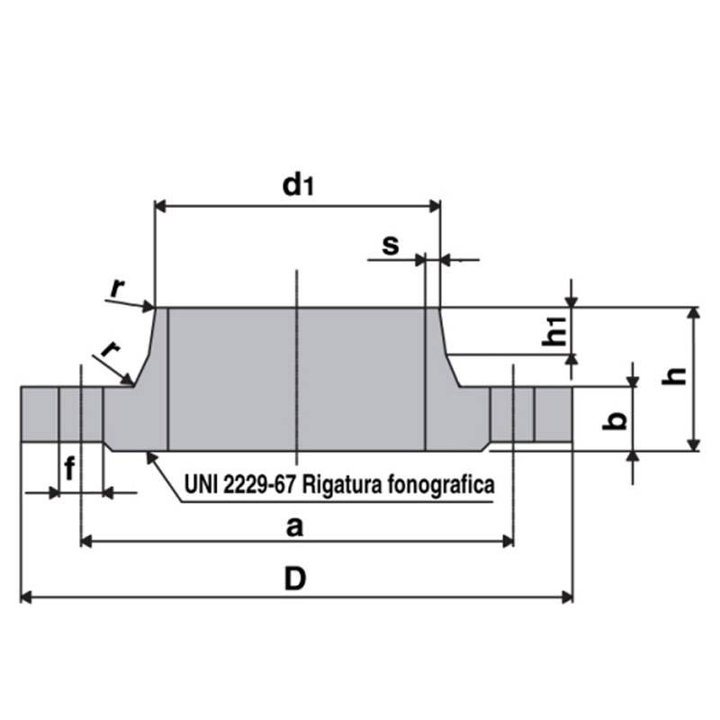 Oter Flange with neck made of UNI 2281 steel with the following characteristics: