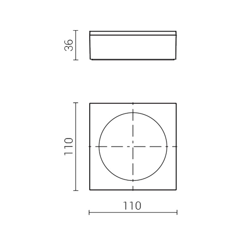- Dimensions: 110 mm x 110 mm x H 36 mm