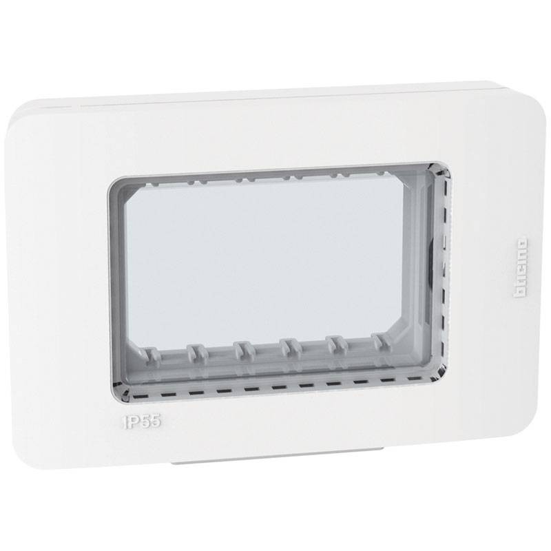 Bticino MatixGO IP55 watertight plate MATIXGO 3 modules color white, to be installed directly on the flush-mounted box, does not need the support.