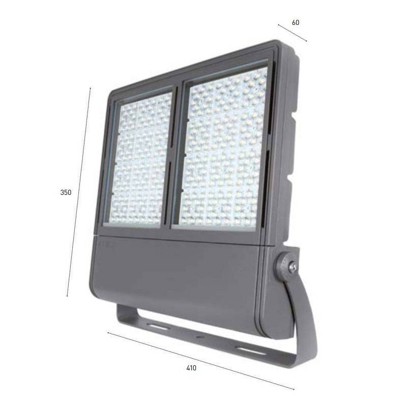 Pay in installments with KlarnaUltra-high-efficiency outdoor floodlight with multichip optical system to improve light distribution and ensure high reliability, body with improved aerodynamic resistance, passivated and painted with high-strength epoxy paints, stainless steel hardware and goniometric system for precise beam adjustment. Compliant with public lighting fixture cams.