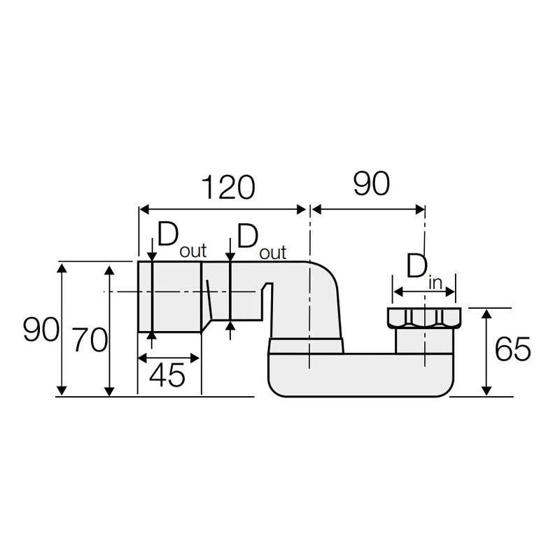 Tub drain trap made of polyethylene, equipped with swivel connection, swivel nut and flat rubber seal. Double-diameter 40/50 mm weld connection (extremely useful in case the diameter of the connecting pipe is not known in advance).