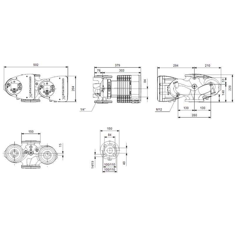 Twin wet rotor circulator pump Grundfos MAGNA3 D 40-80 F with DN 40 pipe connection, operating pressure PN 6/10, centre distance 220 mm. Suitable for: