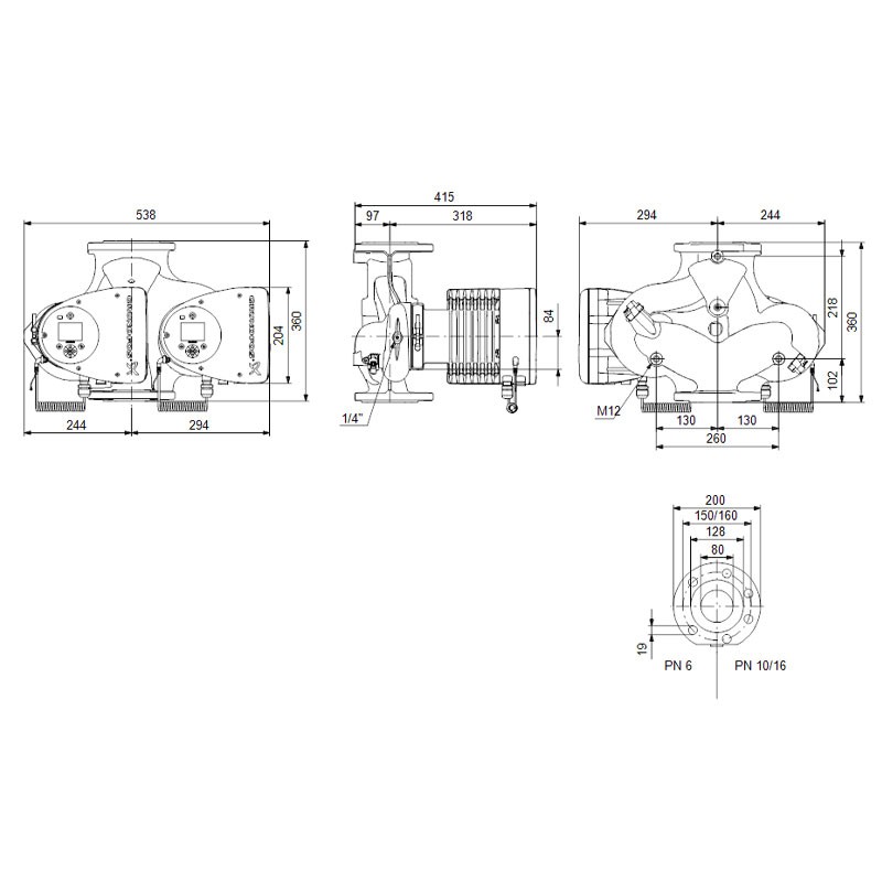 Twin wet rotor circulator Grundfos MAGNA3 D 80-120 F, with pipe connection DN 80, operating pressure PN 6, centre distance 360 mm. Suitable for: