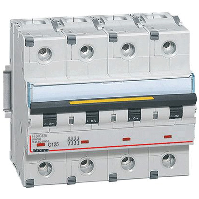 Circuit breaker: 6 modules DIN fitting - (universal attachment to any pbx on the market) (Brand: Bticino) (Pin 4P) (Amps: 125) (breaking capacity: 16kA)(Curve: C)