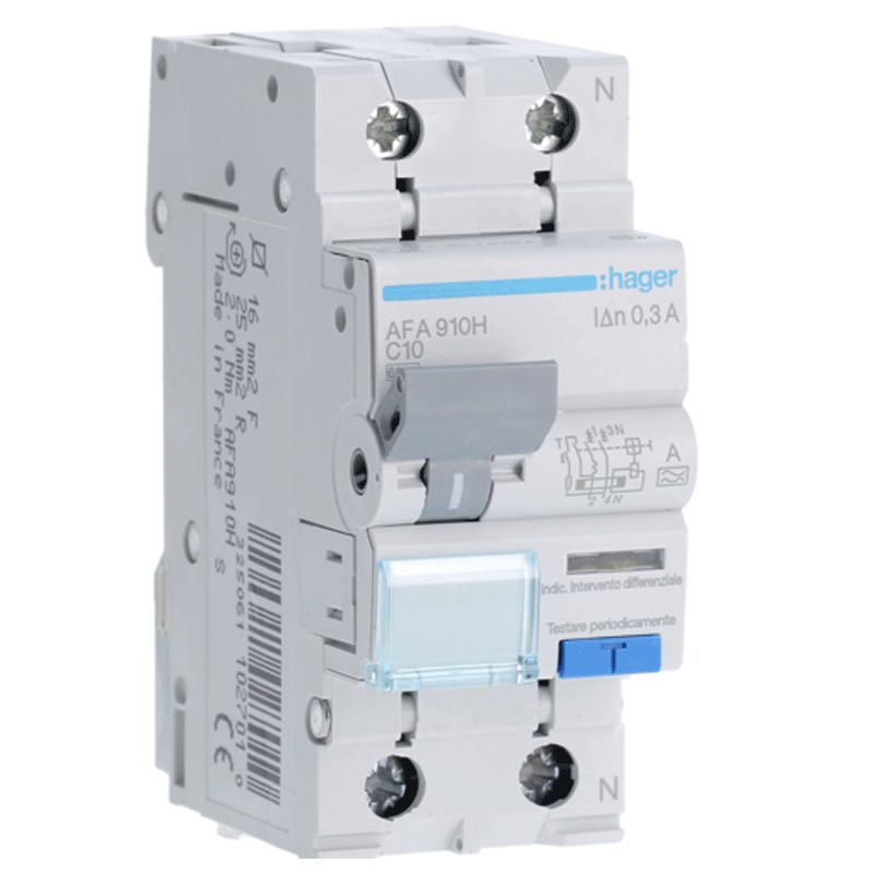 Earth leakage circuit breaker Hager 1P+N 300MA 10A AFA910H