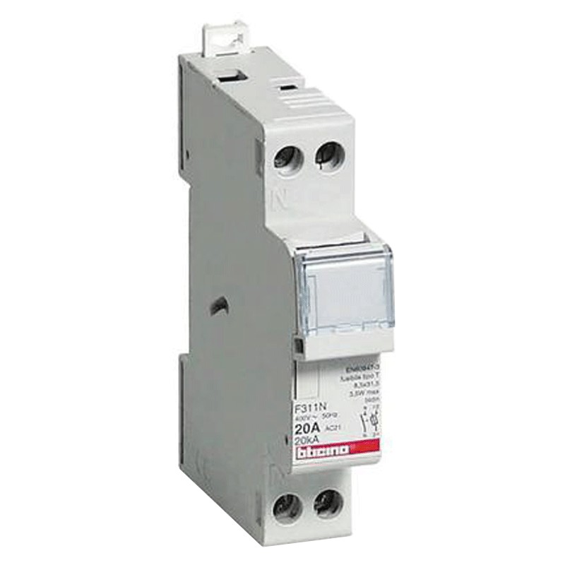 Fuse holder Bticino 1P+N 20A 1 fuse module 8,5x31,5mm F311N