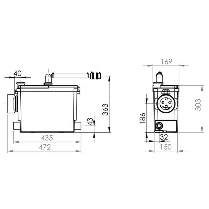 The Sanitrit SFA macerator is installed behind a toilet (standard), sink, bidet or shower with a horizontal outlet and evacuates wastewater through a PVC pipe. It is equipped with a backflow preventer valve that prevents inappropriate turning on of the device and eliminates any risk of backflow of water into the toilet or other sanitary fixtures.