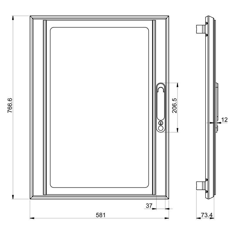 Schneider Prisma G transparent door with the following features: