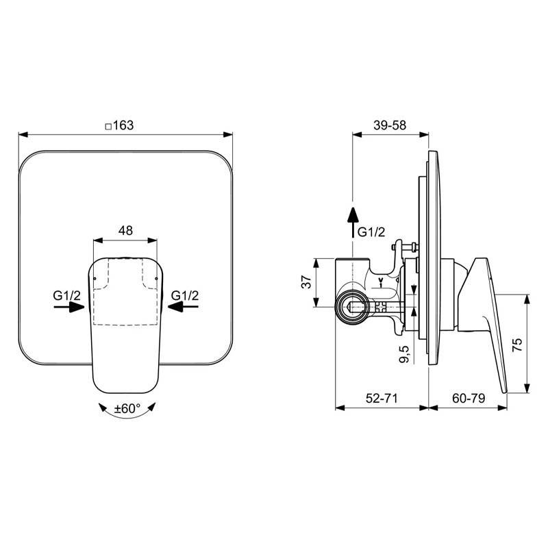 Ideal Standard Ceraplan single-lever built-in shower tap with diverter with the following features: