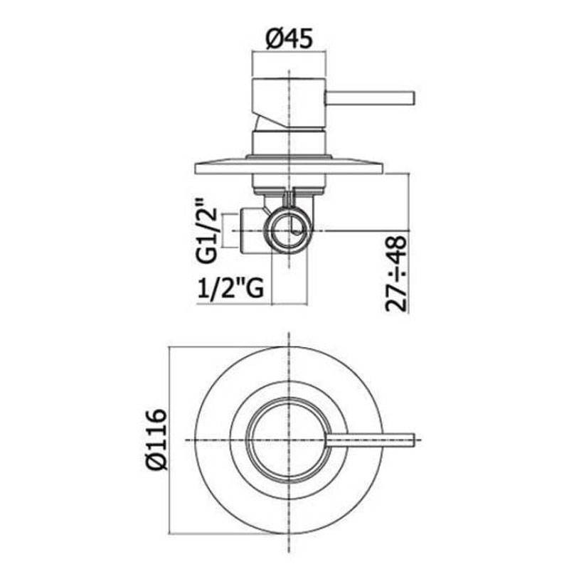 Paffoni Light Chrome-plated recessed shower tap with the following features: