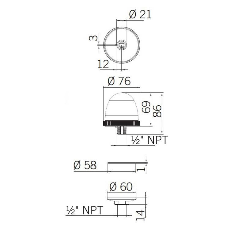 Ovolux Flashing Siren Light Module Ovolux Flashing R 24/240 AC/DC Yellow IP65 30095