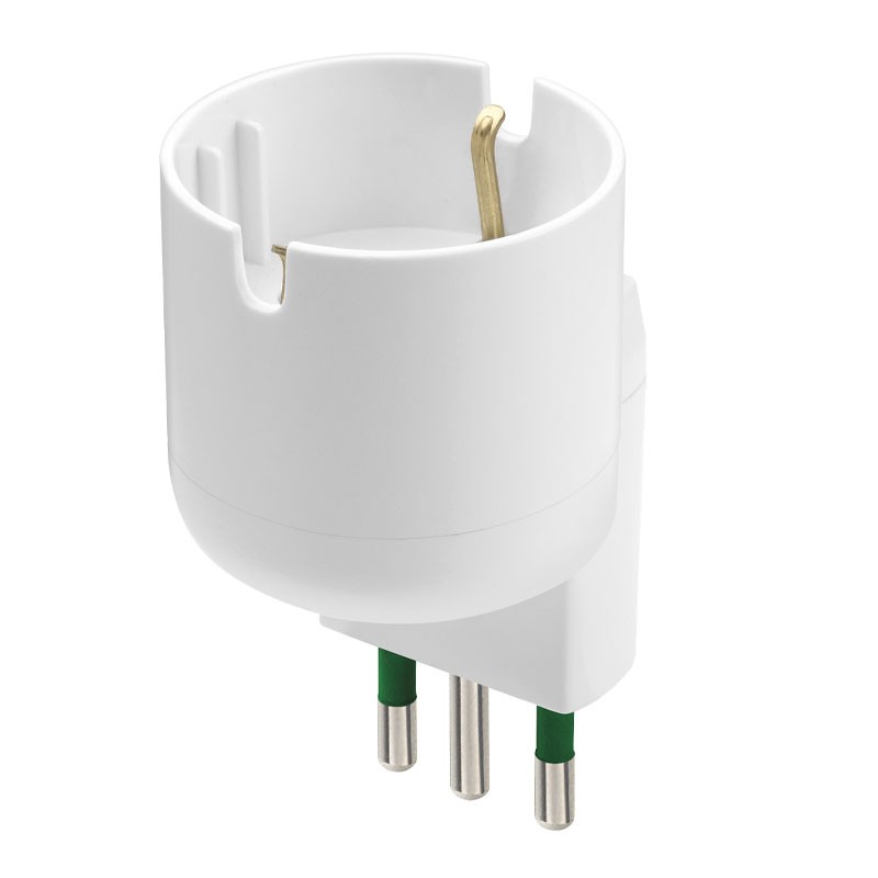 Pay in installments with KlarnaAdapter simple offset SICURY 250 V~ white - max 1500 W - plug 2P+T 10 A standard Italian type S11 - taking 2P+T 16 A standard Italian type P30 (contacts on the earth side and central)