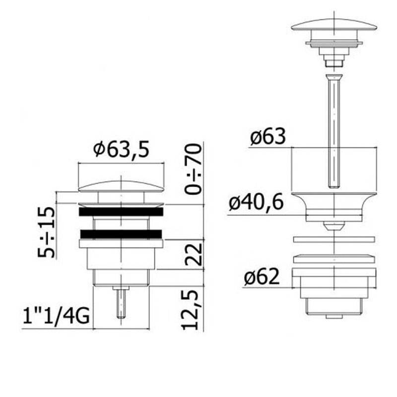 Paffoni Click clack gold universal mixer tap drain with the following features: