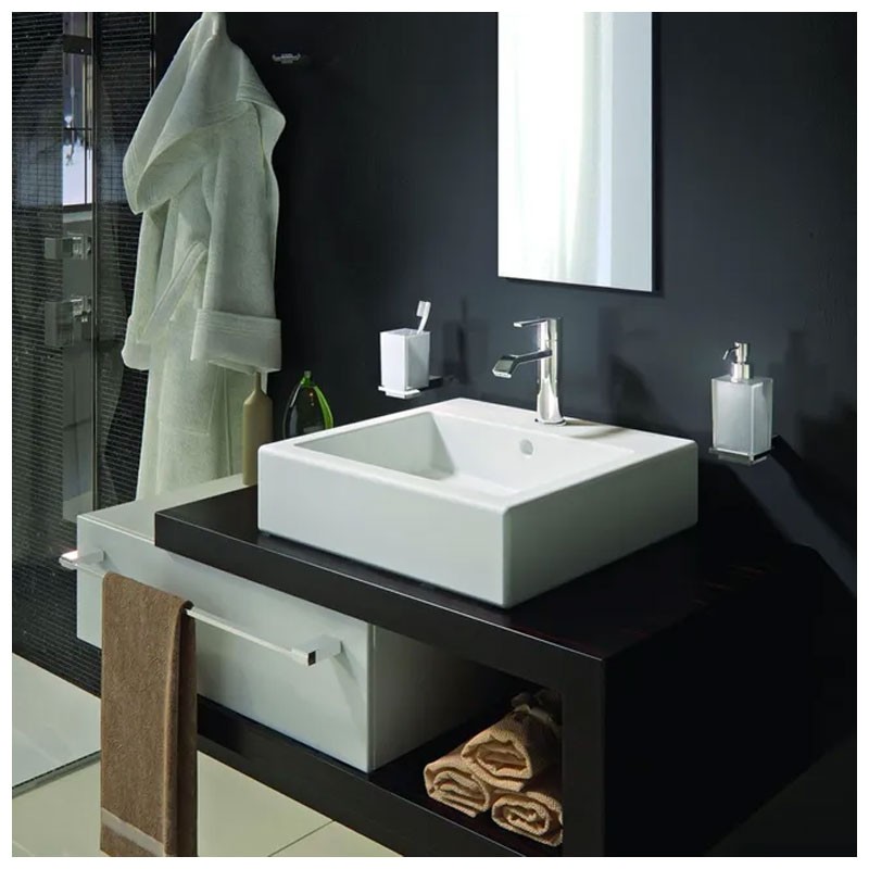 Kansas series also includes liquid dispenser, soap dish, toothbrush holder, towel bar, toilet roll holder.