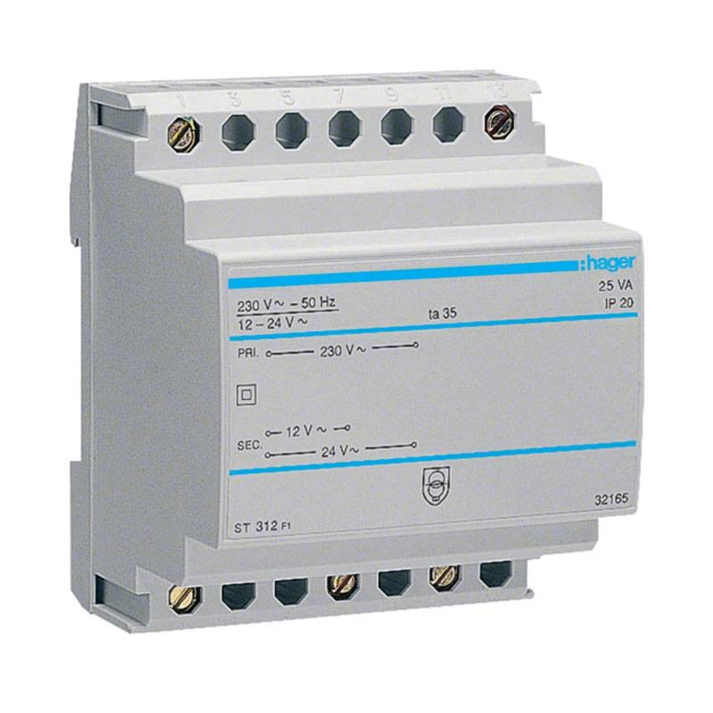 Hager Modular Transformer 230V 12 - 24V Ac 25 Va 4 Modules ST312