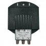 Fracarro DSQ21J line switch with 2 inputs and one output, controlled by satellite receivers through DiSEqC commands on the output port through the coaxial cable.