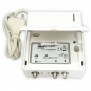 Fracarro amplifier with 1 input and 2 outputs (VHF+UHF) for indoor use, self-powered, with the following characteristics: