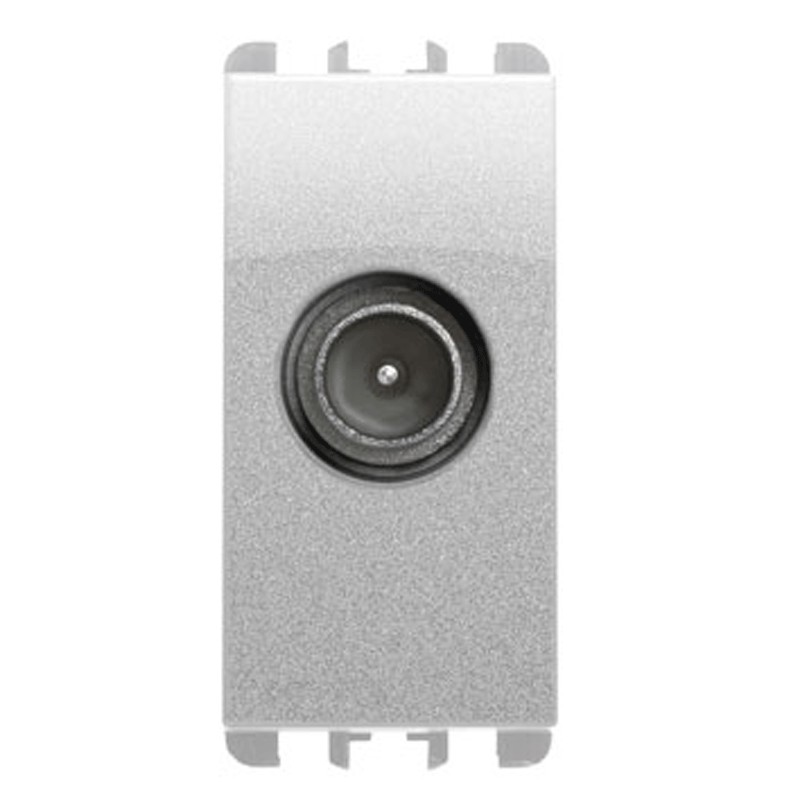 Urmet Simon Nea TV-SAT pass-through socket, frequency 5-2400 MHz, IEC male connector diameter 9.5 mm / IEC 169-2, shunt attenuation 5 dB, 1 module, aluminium grey colour. To be applied on supports 10702N.G,10703N,10704N,10706N,10707.