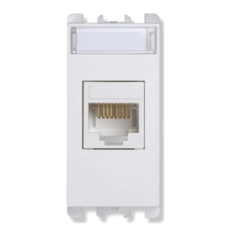 RJ45 CAT 5E data outlet (unshielded) Urmet Simon Nea, with insulated connector type 110. 1 module white. To be applied on supports 10702N.G,10703N,10704N,10706N,10707.