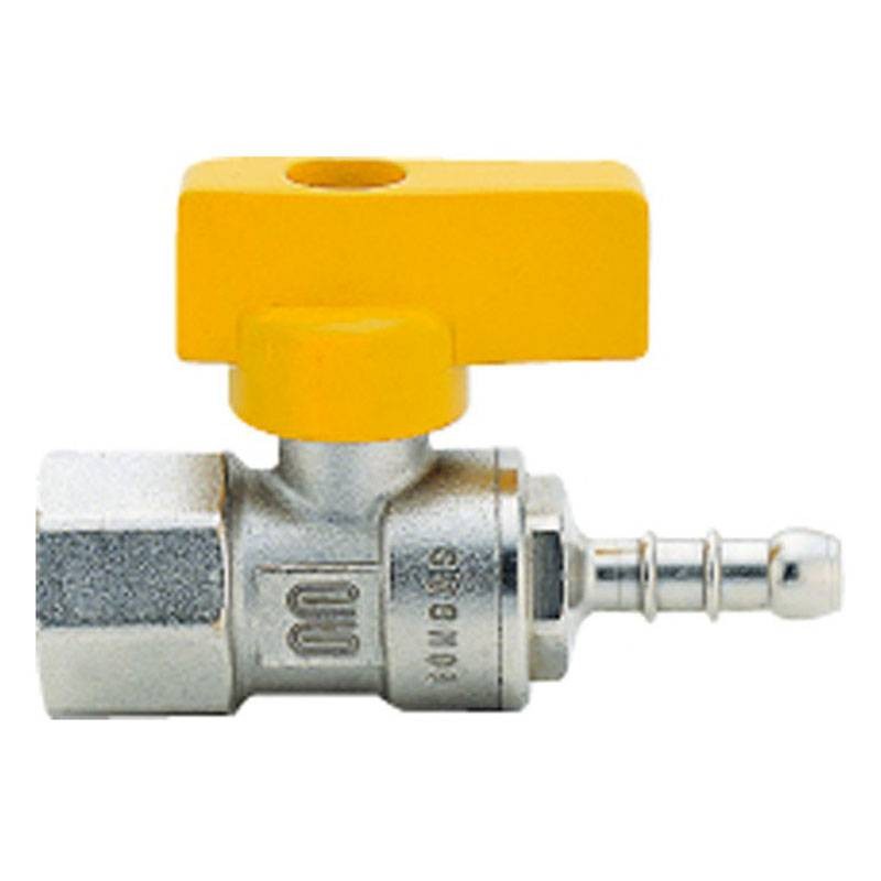 Enolgas Bon Gas LPG ball valve with hose holder with yellow plasticized aluminum lever with the following features:
