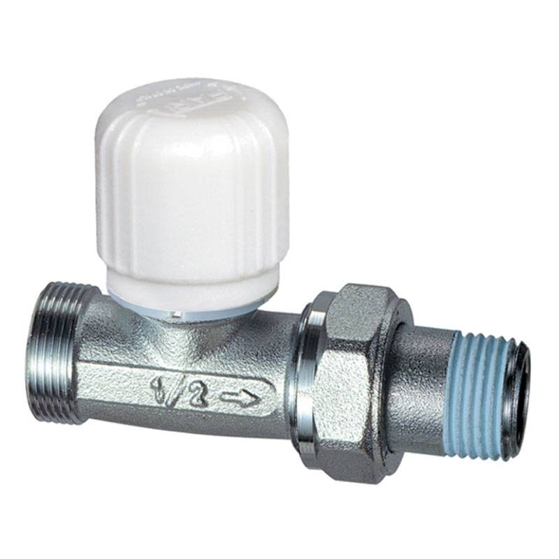 - Straight chrome-plated thermostat valve for radiators arranged for mounting thermostatic or electrothermal devices, with connection for copper, plastic and multilayer pipe, pre-gasketed tang, seal between tang and valve body in HPF, interchangeable stainless steel pin with double o-ring seal and ABS handwheel. Max operating temperature 95°C . Max operating pressure 10 bar.