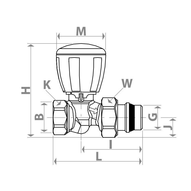 Giacomini straight micrometer valve for radiators with iron pipe connection with the following features: