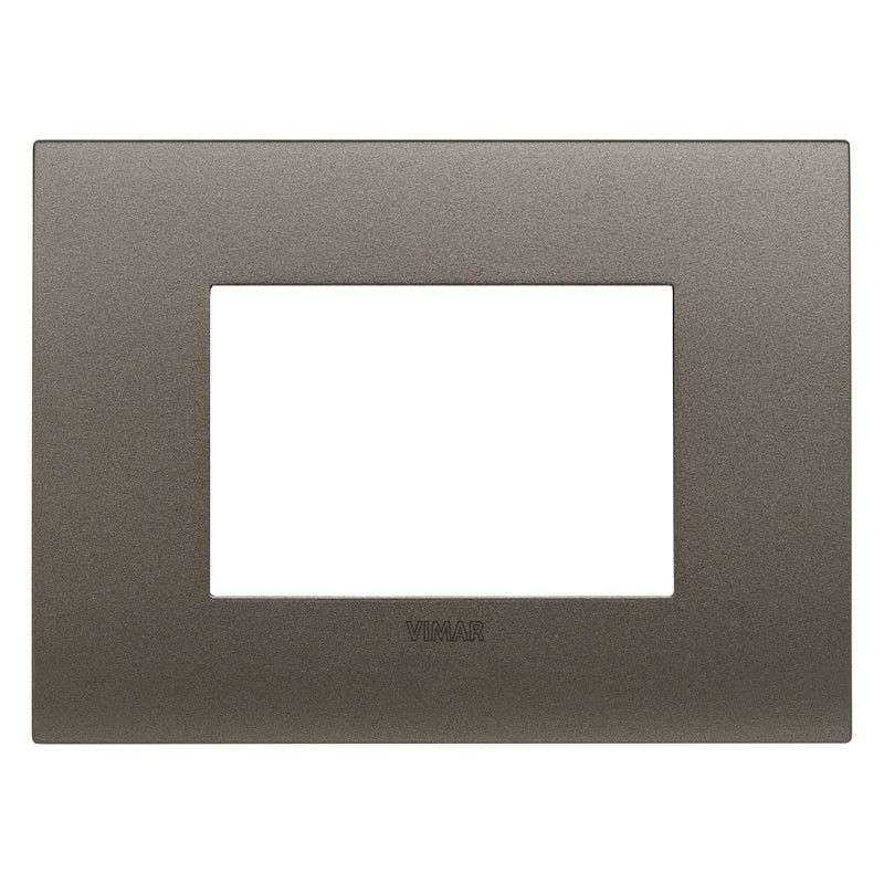 Plate Vimar FIT 3 modules, metal color. To be applied only on support 19913. Perfect result flush with the wall and matchable with any context.