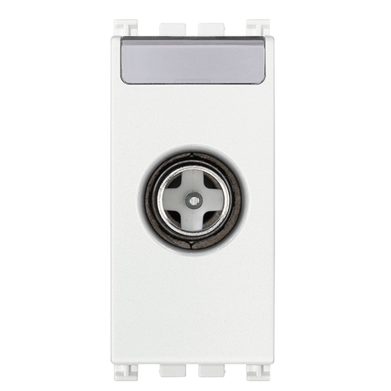 Direct coaxial socket Vimar Arke TV-RD-SAT, frequency 5-2400 MHz, with male connector, shunt attenuation 1 dB, 1 module, white colour. It allows the passage of direct current and control signals (24V 500 mA max).