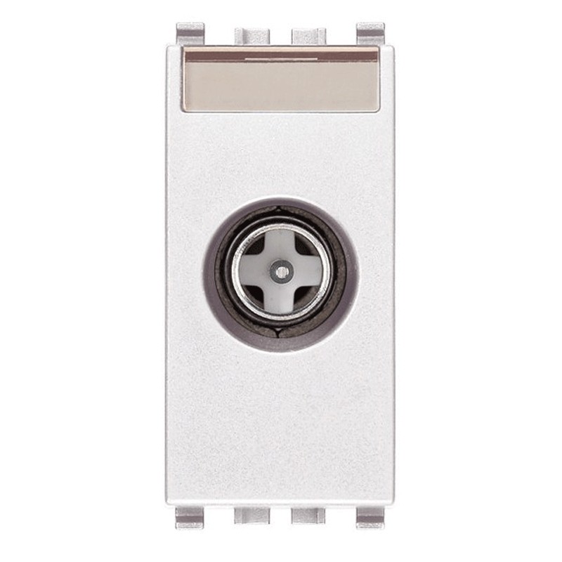 Coaxial TV and Sat socket Vimar Eikon, frequency 5-2400 MHz, through-hole, with male connector, derivation attenuation 10 dB, 1 module, white colour.