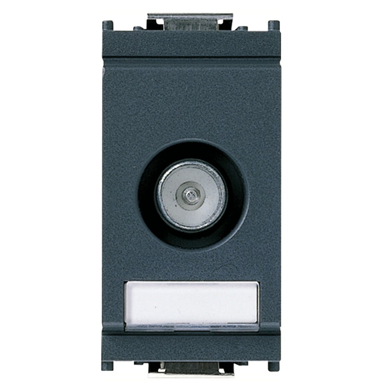Through TV coaxial socket Vimar Idea, frequency 5-2400 MHz, with male connector, derivation attenuation 10 dB, 1 module, grey colour.