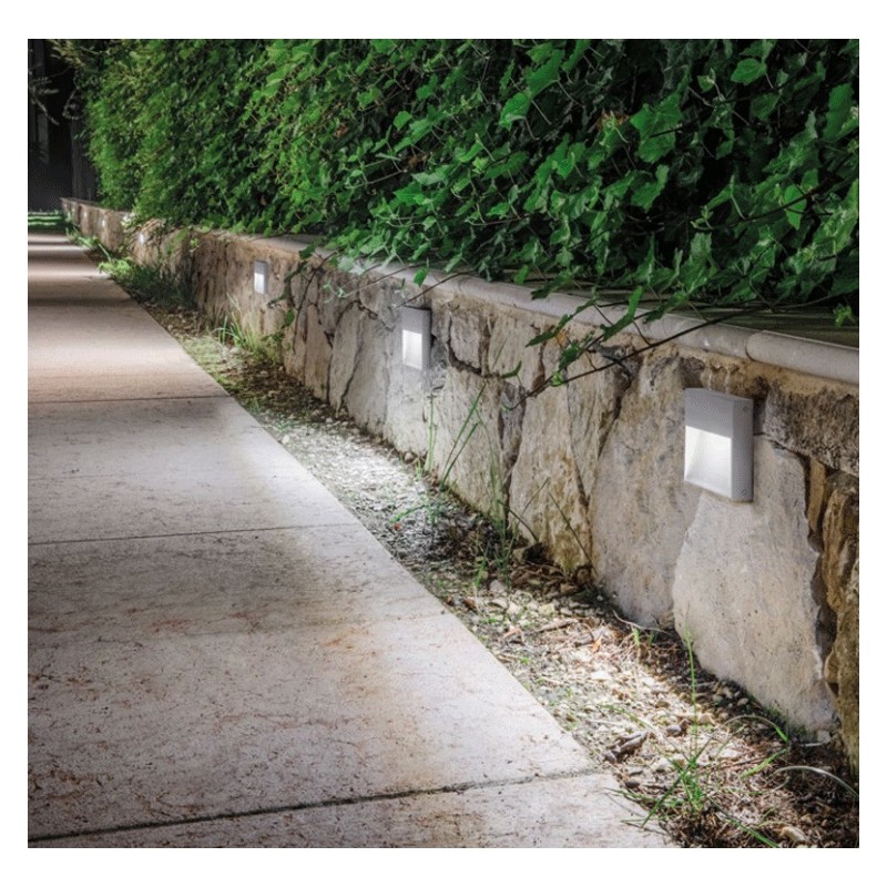 - Outdoor wall-mounted step-light fixture, with minimum projection of 25 mm, for surface or recessed wall installation (by means of optional counter-casing accessory code 5358)