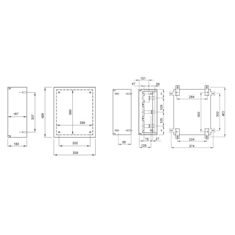 - Nominal dimensions BxHxD 310x425x160 mm