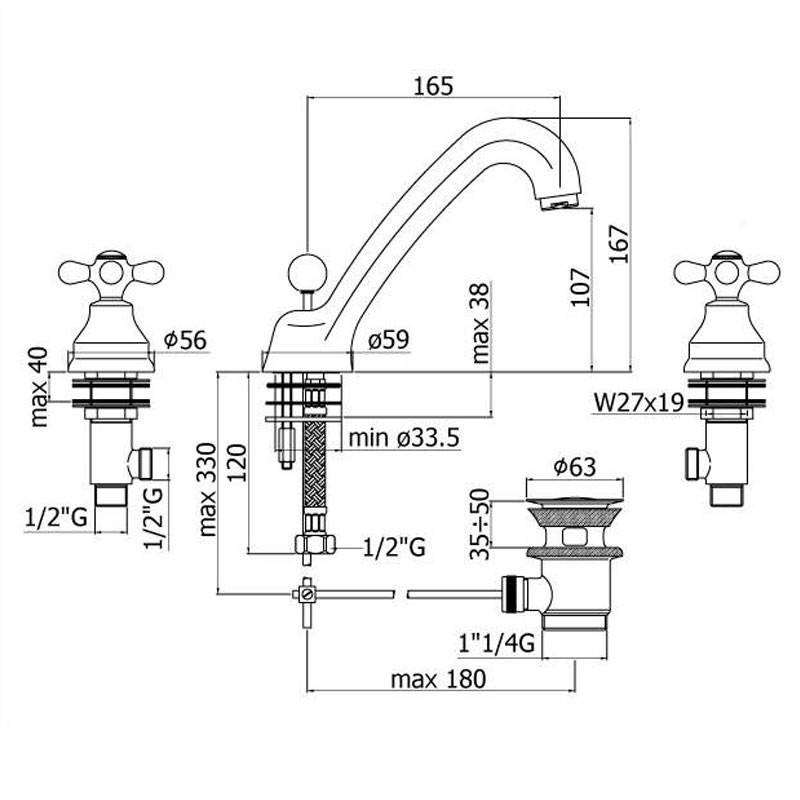 Paffoni Iris washbasin tap with automatic chrome drain with the following features: