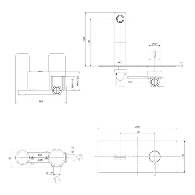 Paffoni Rock recessed washbasin tap with plate chrome RO104CR