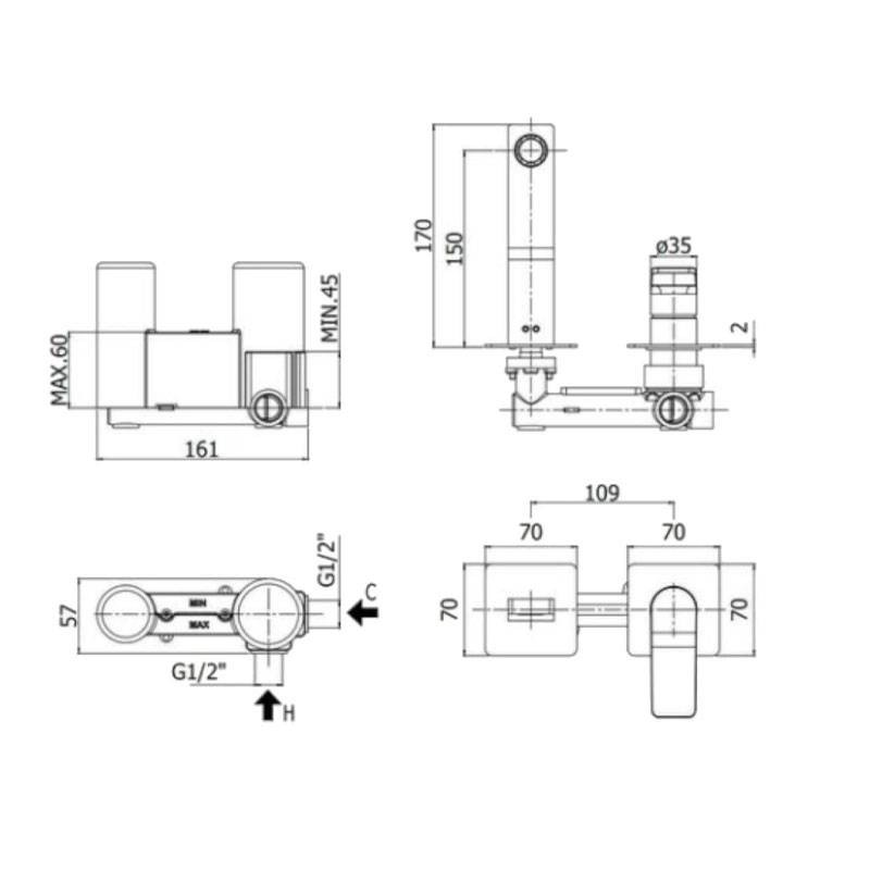 Paffoni Tilt 2-hole recessed washbasin tap chrome TI104CR70