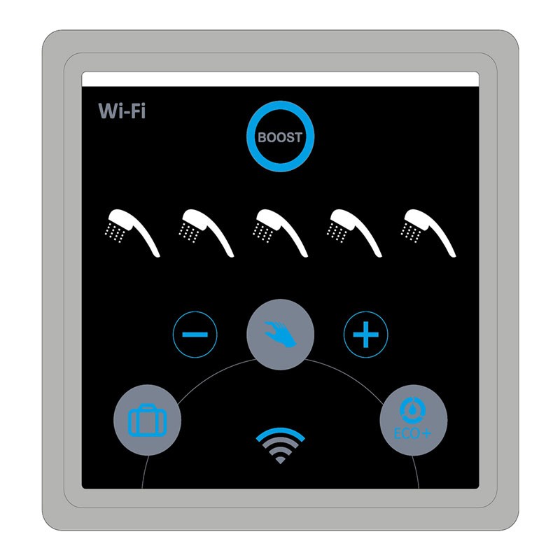 - Shower-ready display showing the amount of hot water remaining (steady) or in production (flashing)