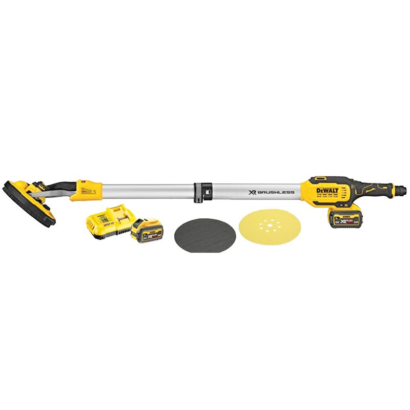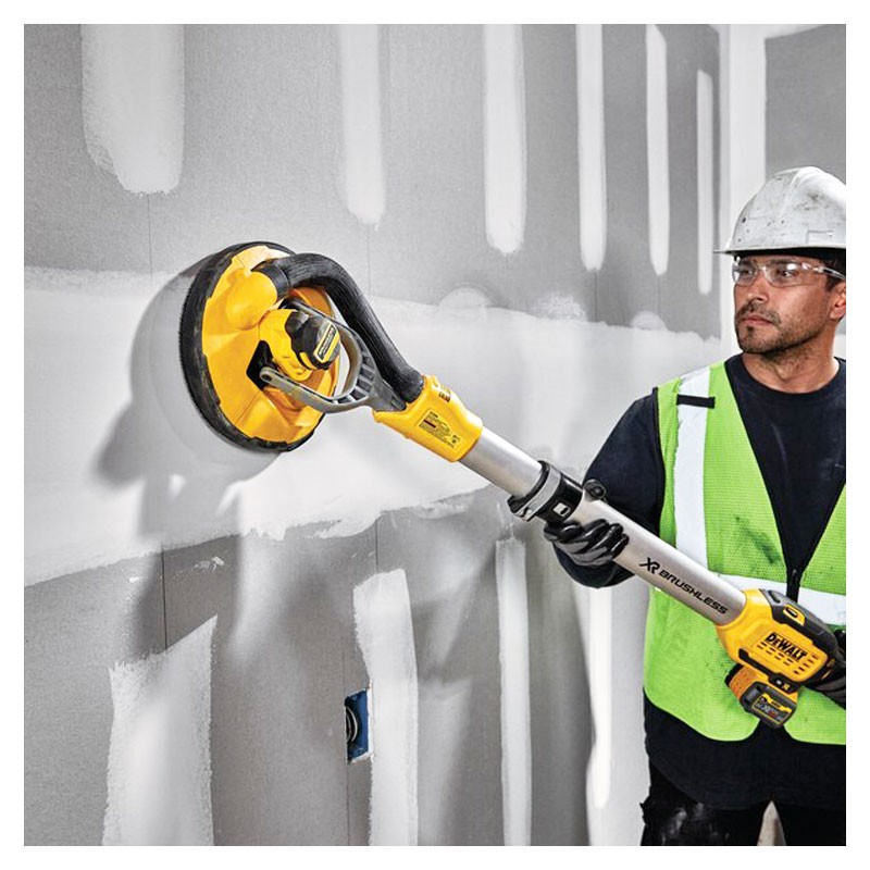 DeWALT plasterboard sander 18V Brushless motor, output power 710W, diameter 225 mm, variable speed 700-1200 rpm, telescopic tube extendable up to 1.6 meters.