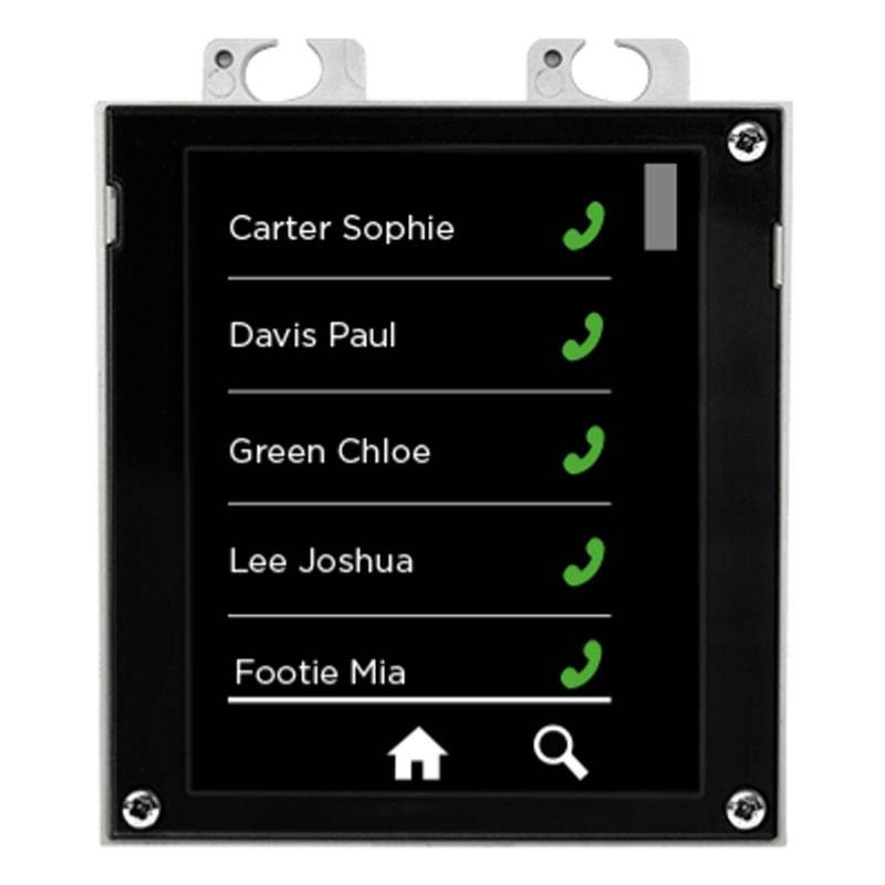 Módulo display LCD touchscreen 2N IP, para panel de control Verso, de cuatro pulgadas se caracteriza por búsquedas y controles intuitivos, funciones:.