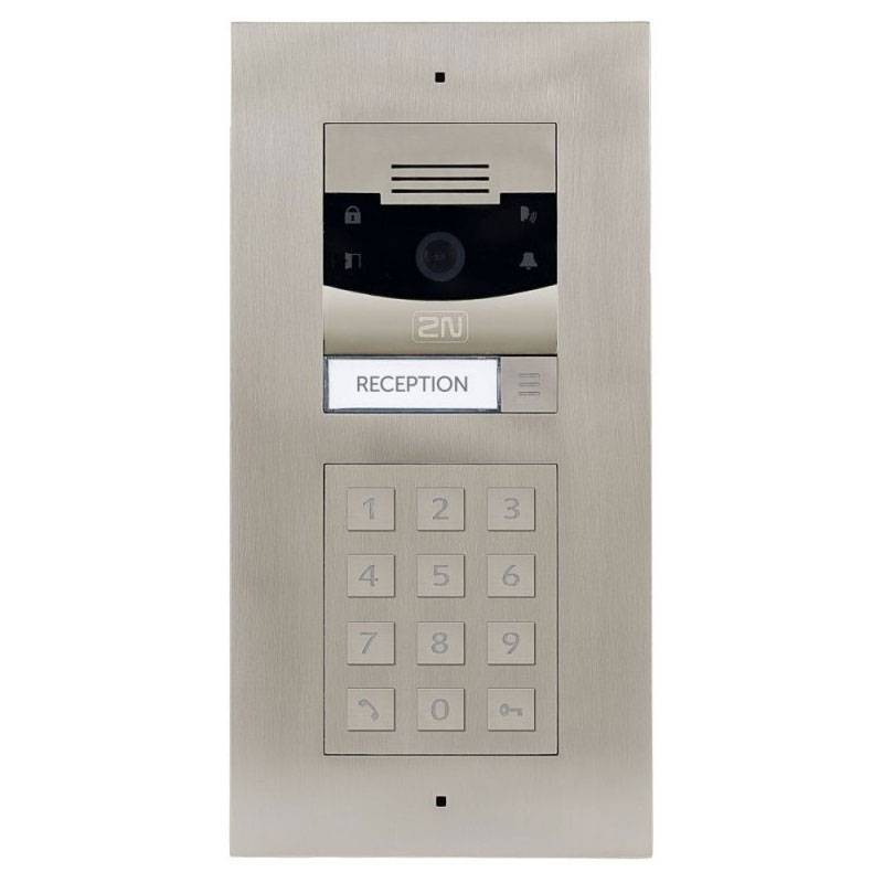 El módulo de teclado numérico 2N de color níquel permite la selección del usuario por posición en la guía telefónica o por número de teléfono. También es posible accionar una cerradura u otras funciones mediante un código numérico. Los dígitos y símbolos del teclado están retroiluminados.