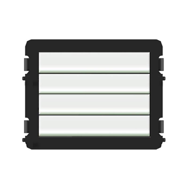 Módulo 4 Botones rectangulares ABB con retroiluminación. Mediante un interruptor especial en el módulo de sonido, los botones pueden dividirse para que el lado izquierdo y el derecho puedan llamar a dos extensiones diferentes.