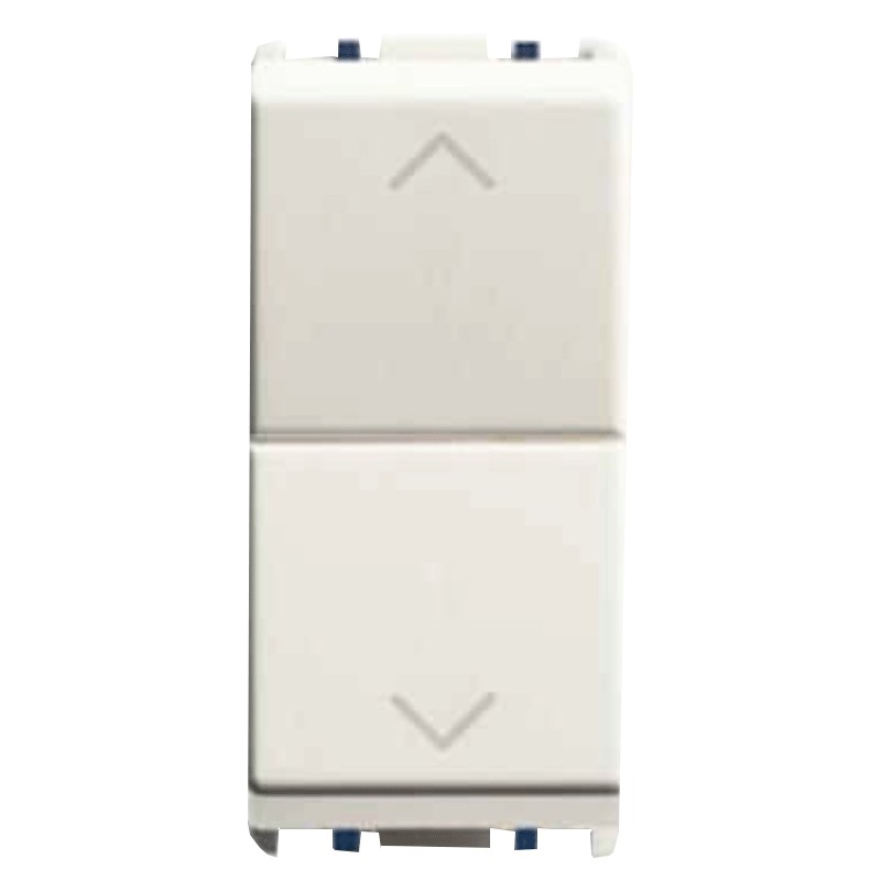 Doble pulsador enclavado 1P NO+NO 16A 250V Abb Chiara 1 módulo color blanco. Suele utilizarse para las persianas de la casa. Hay que mantener el dedo presionado para subir y bajar el obturador.